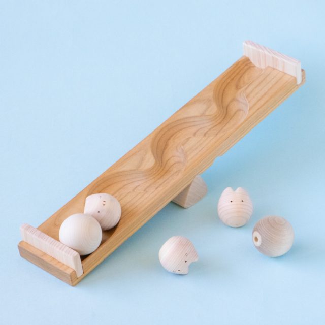 120年のコマ作りで培った伝統のろくろ技術と、非対称で有機的なカタチを作ることができる3D加工機で、優しくて繊細な曲面となっています。